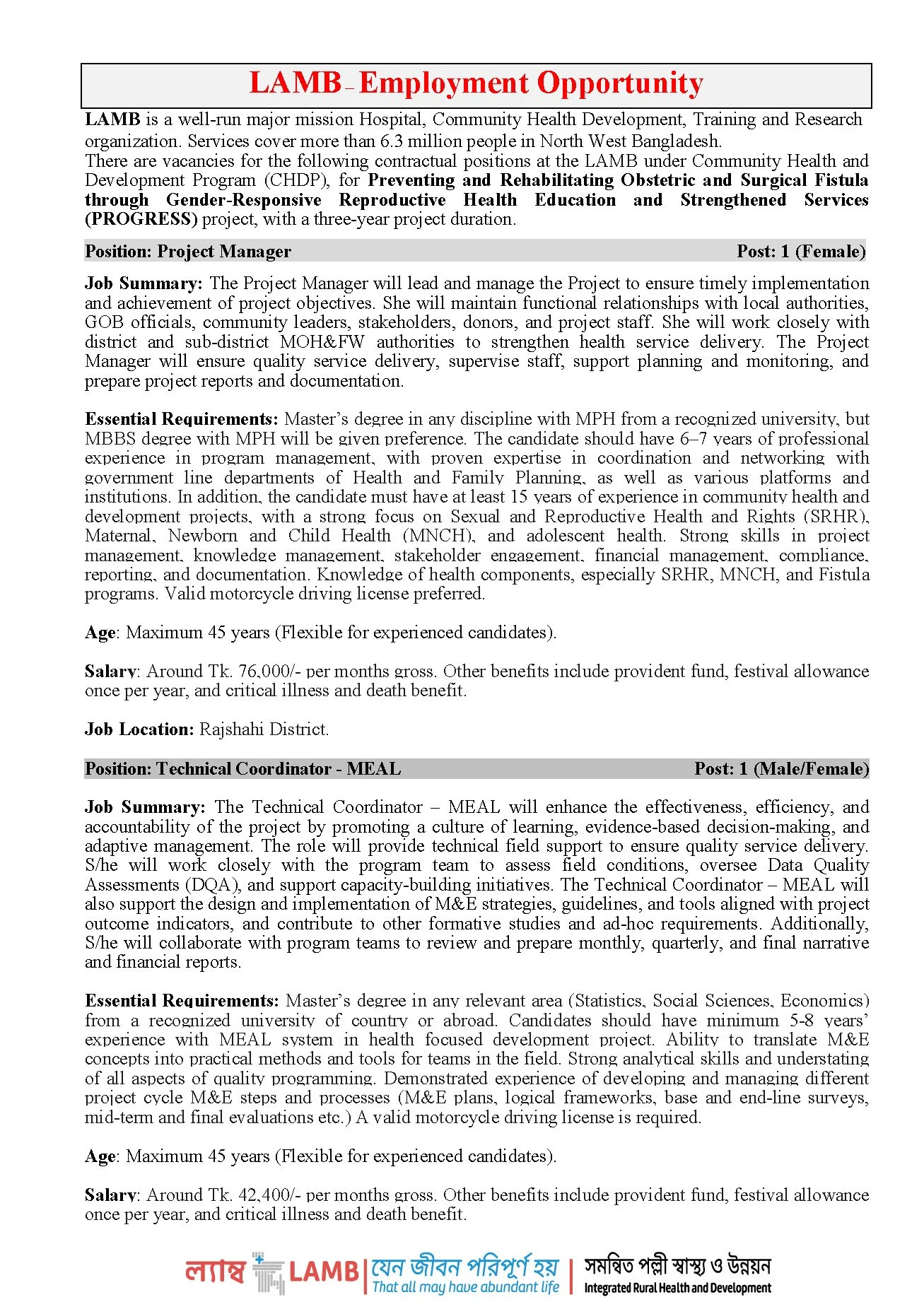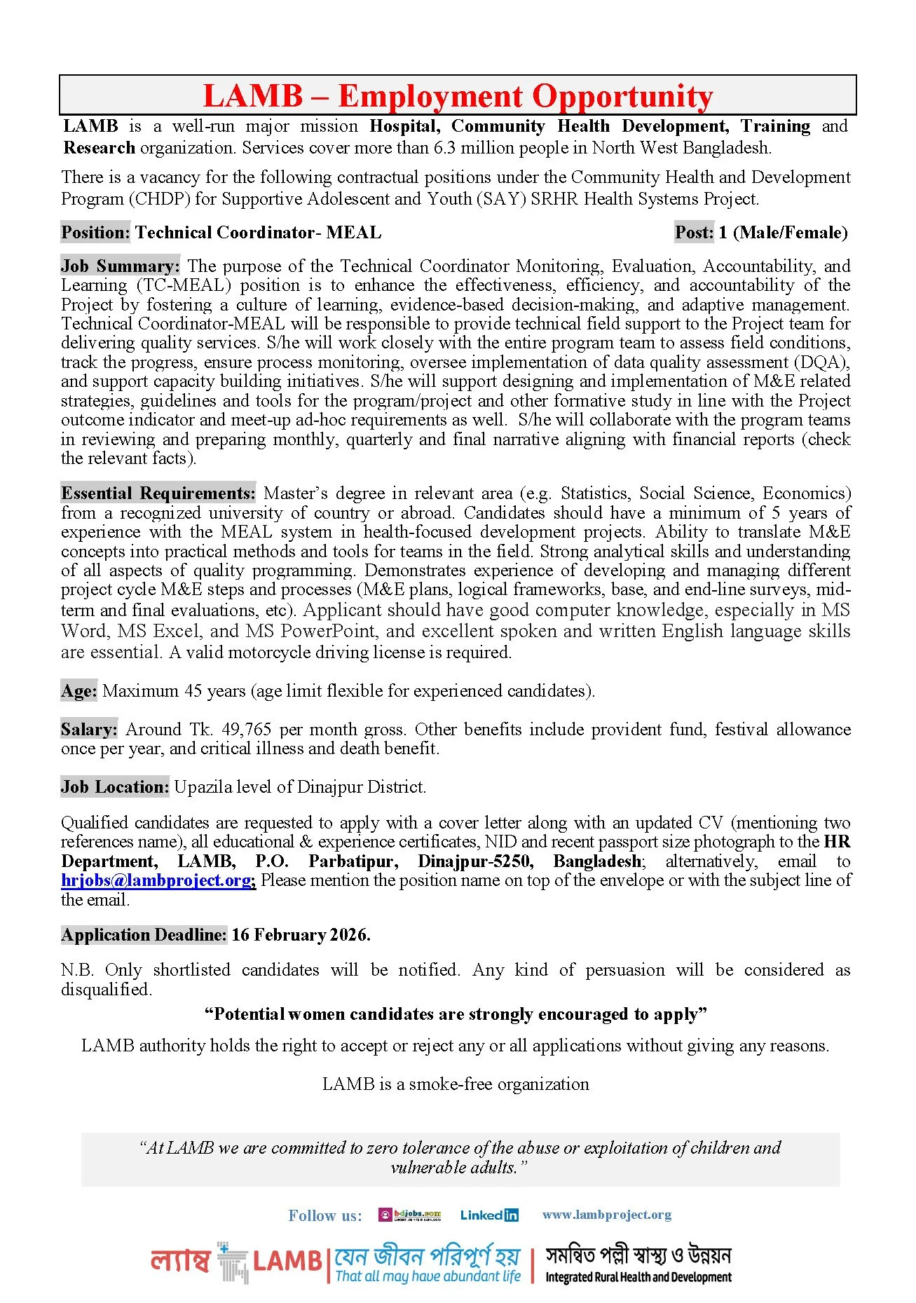Technical Coordinator- MEAL - 1 (Male/Female)